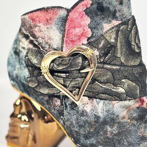 Details: One of Irregular Choice’s most iconic designs, Dead Funny is a gothic statement piece featuring plush velvet floral uppers, oversized applique roses, and the unforgettable skull heels. The skulls are metallic gold with glowing LED red eyes that light up when you walk — an electrifying detail that makes this pair legendary among IC collectors. Rarely found new in box, these are a true grail for fans of bold, spooky, and theatrical footwear.
