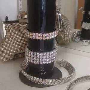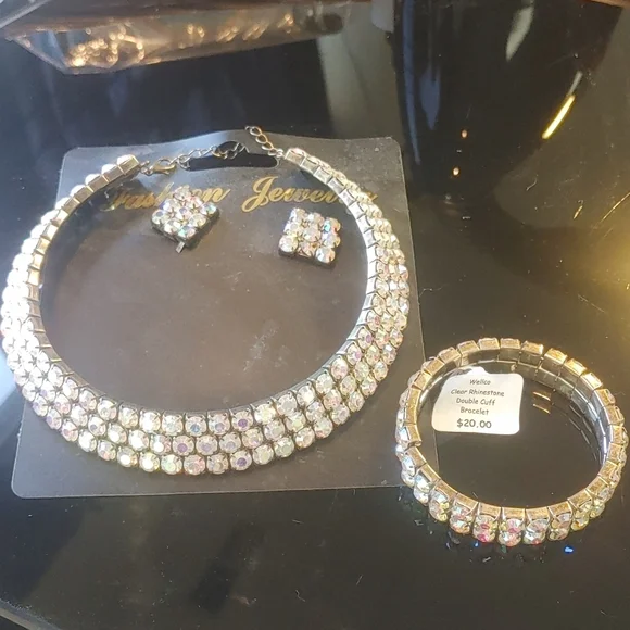 Shine ! Shine Shine! A stunning choker of 3 rows of irridescent rhinestones. Expandable with a clasp fastener