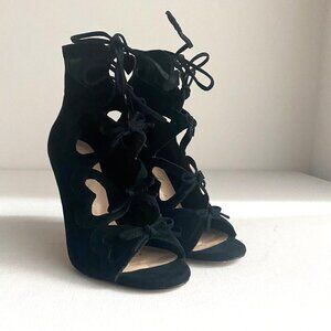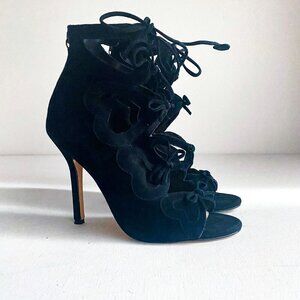 Isa Tapia Balck Suede Heart Motif Lace up Laser cut Booties 36