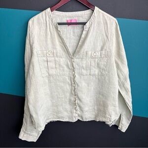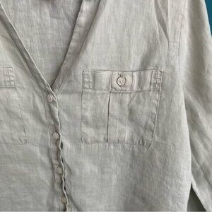Isaac Mizrahi Light Cream Button-Up Blouse 100% linen