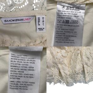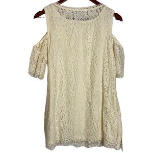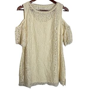 Isaac Mizrahi Live! Cream Short Sleeve Cold Shoulder Floral Lace Lined Top M