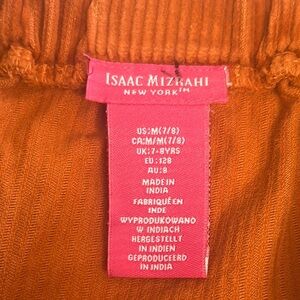 This vibrant orange corduroy mini skirt by Isaac Mizrahi is a chic addition to any fashion-forward wardrobe. Wasting waistband for a comfortable fit. Its bold color and sleek silhouette make it a standout piece for any occasion, ensuring you turn heads wherever you go.