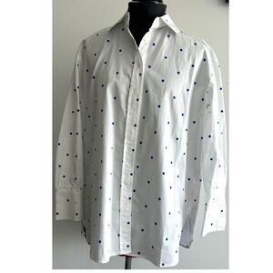 Isaac Mizrahi Polkadot White and Blue Shirt Sz M