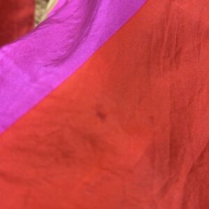 Vibrant blouse with bold red and pink stripes. Features a button-down front. Stylish and eye-catching design.