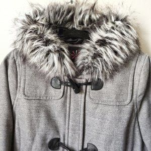 Isaac Mizrahi Toggle Fur Hooded Winter Pea Coat XS