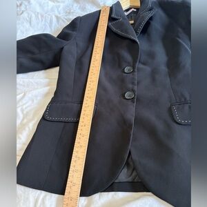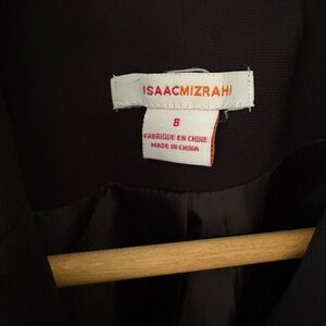 Isaac Mizrahi black structured blazer white stitch detail size 8