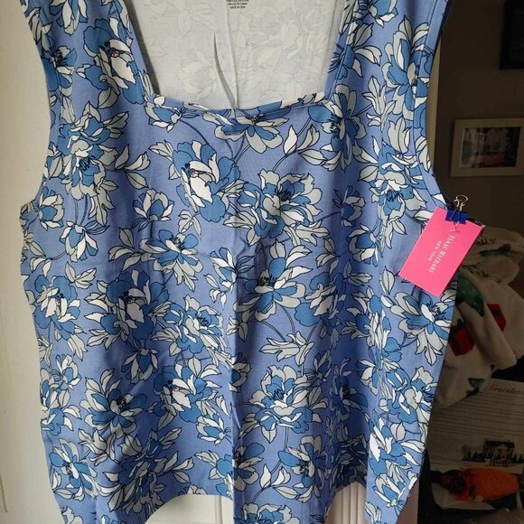 New Isaac Mizrahi new square neck tank top size is XXXL lovely blue floral for summer causal or dressy also great layering piece
