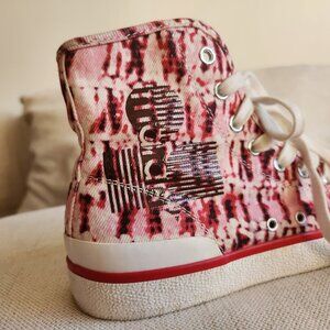 - 100% cotton canvas upper with red, pink and white tie-dye print
