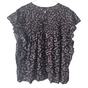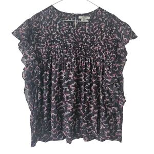 Isabel Marant Black Floral Ilayona Ruffled Cotton Blouse Size 12