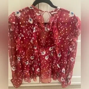 Isabel Marant silk blouse, size 36, red/blue/white with gold accents, open back, excellent condition, worn once