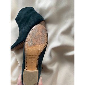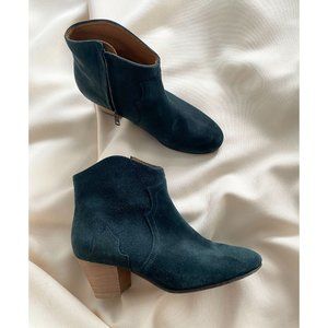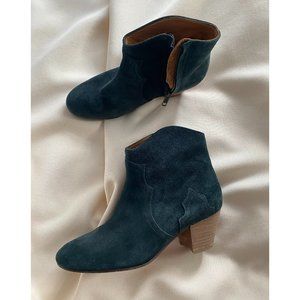 Elegant suede ankle boots. Features a side zipper. Stylish block heel.