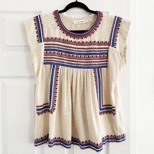 Isabel Marant Etoile "Dumas" Embroidered Raw Silk Top in Ivory, size 36 (size S)