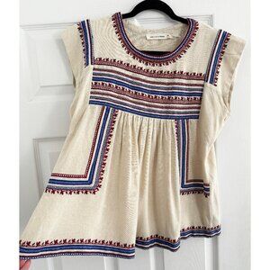 Isabel Marant Etoile "Dumas" Embroidered Raw Silk Top in Ivory, size 36 (size S)
