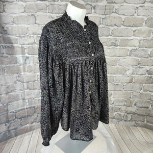 Isabel Marant Etoile Lalia Floral Pintuck Boho Prairie Blouse Black Size 40