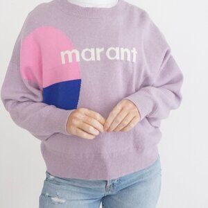 Isabel Marant Etoile Purple Pink Korbin Logo 45% Cotton 20% Wool Sweater 44 (M)