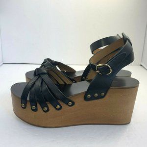 Isabel Marant Etoile Zia Leather Platform Wooden Wedge Sandals EU 35 US 5 $455