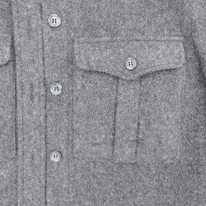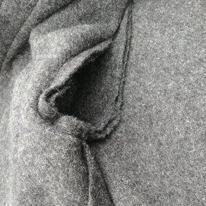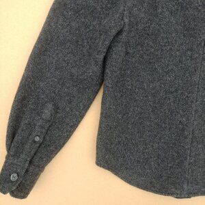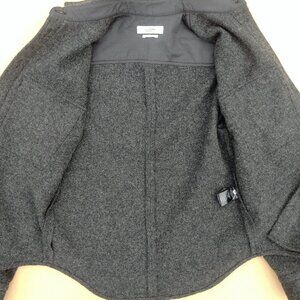 Chic gray wool jacket. Features button closure. Two front pockets. Long sleeves.