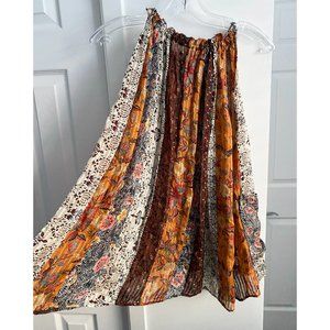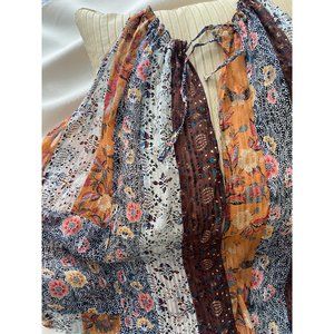 Isabel Marant Orange Printed Silk Patchwork Top, size 36. Fits loose to size, good for a size small ish (but seriously, so size flexible, works for a medium, works if you're pregnant, seriously so flowy).