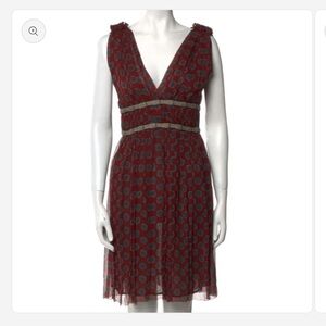 Isabel Marant Red and Gray Patterned Silk Midi Dress
