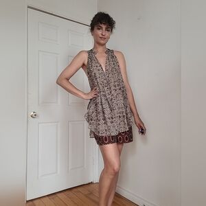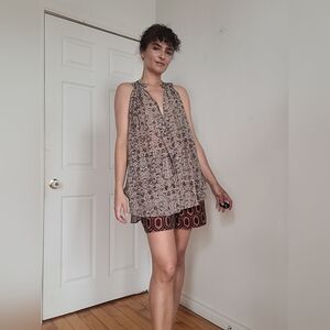 Isabel Marant Silk Boho Sleeveless Patterned Tunic Top