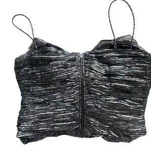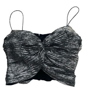 A show stopping crop from Isabel Marant - the Tresha with metallic bow embellishment. Full zip closure at the back. Removable spaghetti straps. Metallic crinkle construction. Size EU 38. 17” pit to pit. Lined.