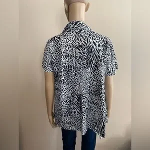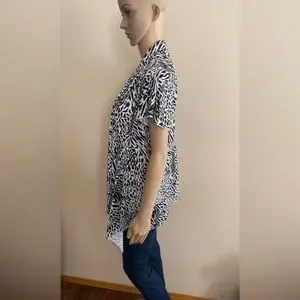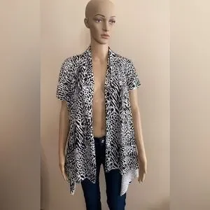 Animal Print Open Front Cardigan. Short Sleeve. Asymmetrical Hem