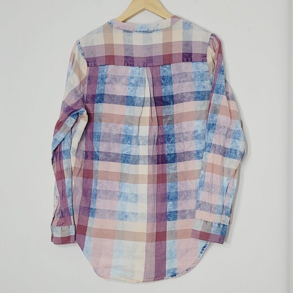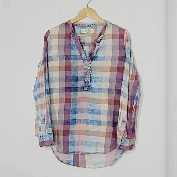 Isabella Sinclair Women Multi Pastel Plaid Buttoned Ruffle Anthropologie Henley Blouse Size Medium