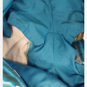 Blue with orange, yellow and cream flowers, these shorts are fully lined. Featuring a pocket and velcro/lace closure.