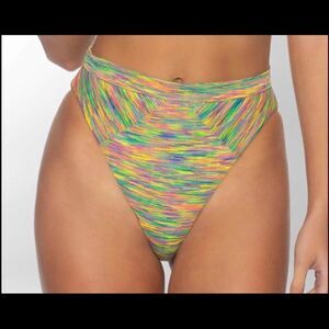 NWOT- Multicolour high waist bikini bottom, back cut-out