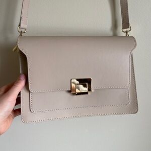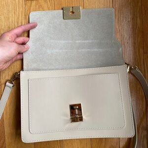 This elegant cream shoulder bag is perfect for any occasion. Its sleek design and neutral color make it a versatile addition to your wardrobe.