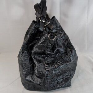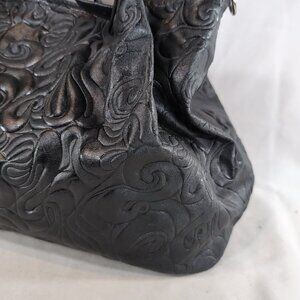 Isadora Italy Tooled Leather Purse Black Large Shoulder Bag Tote Swirls MSRP$425