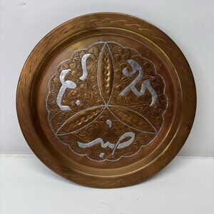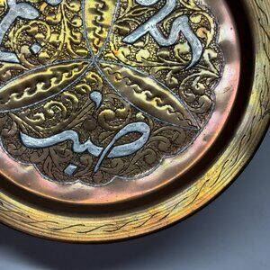 Islamic Inlay Brass Tray / Charger With Copper And Silver Overlay 24cm