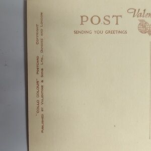 This is a pair of very old unused colour postcard of Port Ellen, Isle of Islay. I don't know the exact age of the card, but it looks to be from around the mid 1900s. They are a Valentine's "Collo Colour" Postcard, published by Valentine & Sons Ltd, Dundee and London, numbered A.9950. Both cards are in very good condition - no creases or marks, even the corners remain sharp.