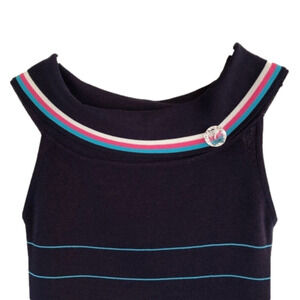Isola Sleeveless knit sweater colour block. Navy & pink Boat neck Quality fabric