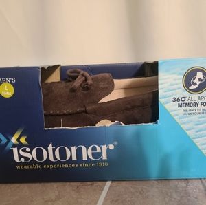 Brand new Isotoner slippers. They come in original packaging. Unfortunately the packaging has some wear bit the shoes are NWT. T