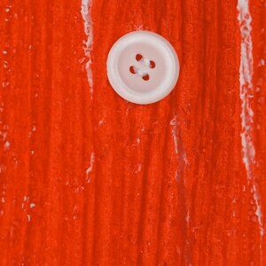 A vibrant red and white button-up jacket from Issey Miyake beautifully crafted in the brand's signature 'crinkled' texture. This jacket comes in an orange-red colour with white accents dispersed throughout and features a pair of front slip pockets, a mock neckline, and a row of six white buttons down the front for fastening.
