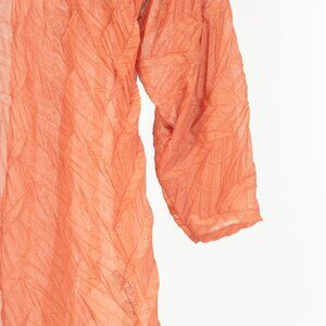 Made in Japan, this jacket from Issey Miyake is crafted in an architectural-pleated terracotta synthetic with a perforated face pattern throughout, and features long sleeves, a shawl collar, and an open front.