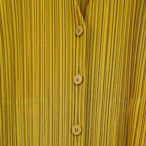 Issey Miyake Pleats Please Chartreuse Pleated Long Buttoned Cardigan