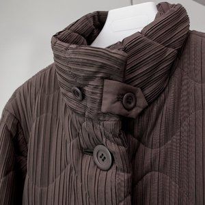 Issey Miyake Taupe Pleated Quilted Coat