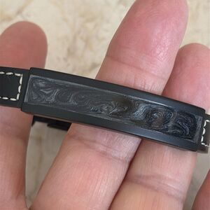 In excellent preowned condition Italgem black Ion-plated Stainless Steel Galaxy Plate black leather unisex bracelet.