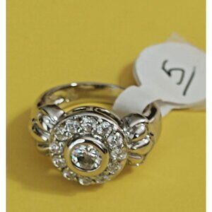 Italian 925 Sterling Silver Women's Ring with Clear Rhinestone - Size 5 New