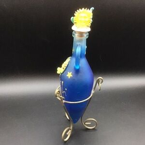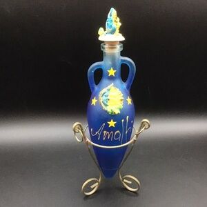 Italian Amalfi Souvenir Glass Amphora/Flask w Metal Stand and 4 Limoncello fr