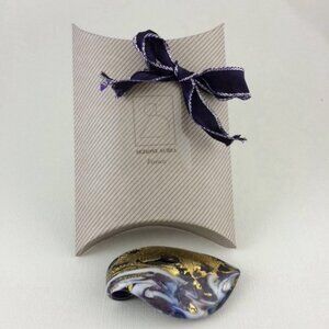 Italian Glass Pendant Dichroic Black Gold Shimmer Leaf Shaped Florence Artisan