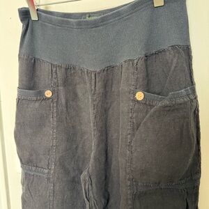 Slip into effortless comfort with these authentic Italian linen cropped pants. Made from breathable, natural linen, they feature a soft stretch waistband, roomy cargo-style pockets, and charming button details at the cuffs for a relaxed, artsy touch. Perfect for summer strolls, travel days, or layering into your boho-chic capsule wardrobe.