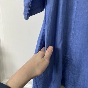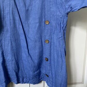 Italian Linen Tunic Top Womens XL Beach Boho Coastal Lagenlook Blue
