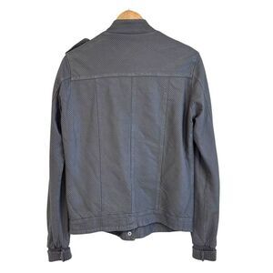 In excellent condition. Grey leather jacket from Wild Lab Generation. Lightweight with a perforated leather. This jacket is designed like a jean jacket with snap closure as well snaps at the pockets and shoulders. Made in Italy and lined with viscose and silk. Flat lay measurements: 20.5" pit to pit, 24" length.