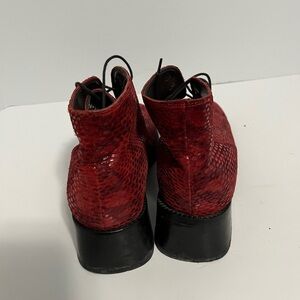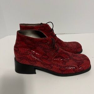 Italian Red Snakeskin Print Lace-Up Ankle Boots Fun Funky Footwear US 7 EUR 37
