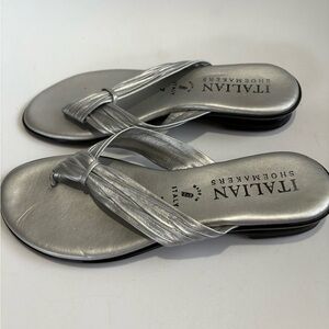 Italian Shoemakers Aleena sandals size 7 metallic steel flat with slight heel