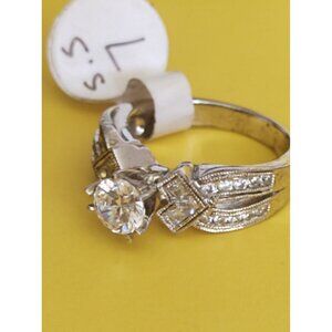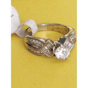 Italian Sterling Silver 925 Women's Size 7 Cubic Zirconia Engagement Cut