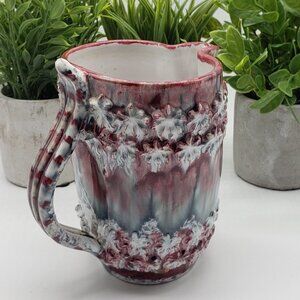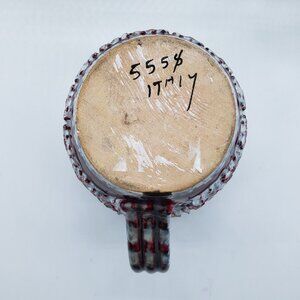 Good used condition with one chip on top of handle (see pics) which doesn't impede the look or function of the pitcher/vase; beautiful amethyst (purple) and grey coloured art pottery made in Italy (serial no. 5558); use as a pitcher or vase.